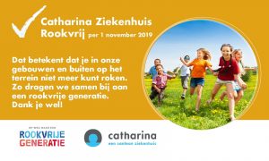 Het Catharina Ziekenhuis is volledig rookvrij. Dit geldt niet alleen voor onze gebouwen, ons hele terrein is rookvrij. Wij willen de gezondheid van onze patiënten en medewerkers verbeteren. Daarom zorgen we ervoor dat onze patiënten, bezoekers en medewerkers niet in aanraking hoeven te komen met roken. Ook ondersteunen we medewerkers en patiënten bij het stoppen met roken.