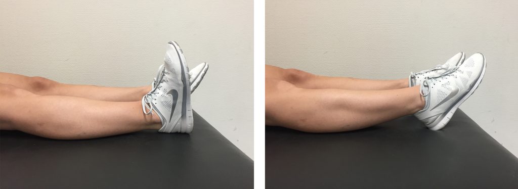- Schuif de voet weer terug en strek de knie.